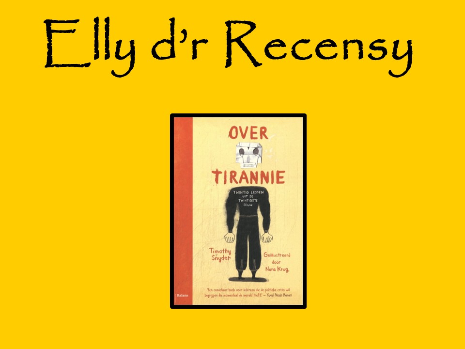Ik las Over tirannie van Timothy Snyder, de geïllustreerde uitgave, uit 2022. Dit is een leuke, toegankelijke samenvatting van zijn gelijknamige boek uit 2017. Voor de duidelijkheid: de samenvatting is leuk door de tekeningen, de inhoud is behoorlijk zorgwekkend. Het gaat over ‘een Amerikaanse president’ die nooit bij naam wordt genoemd, en wiens acties, in 2017 dus, veel overeenkomsten hebben met de bekende totalitaire regimes uit het verleden. Leerzaam, juist nu.